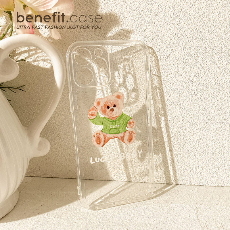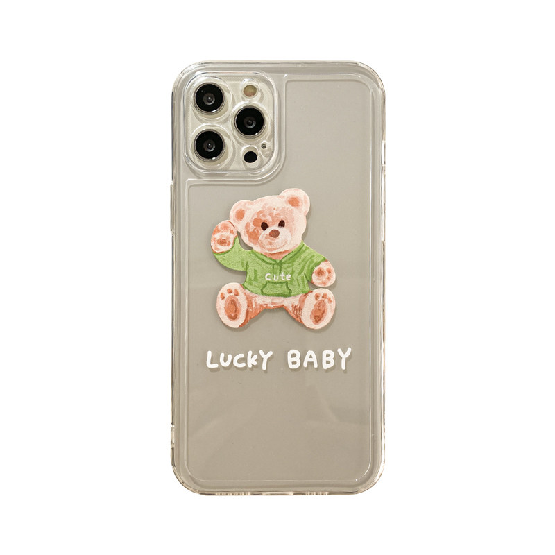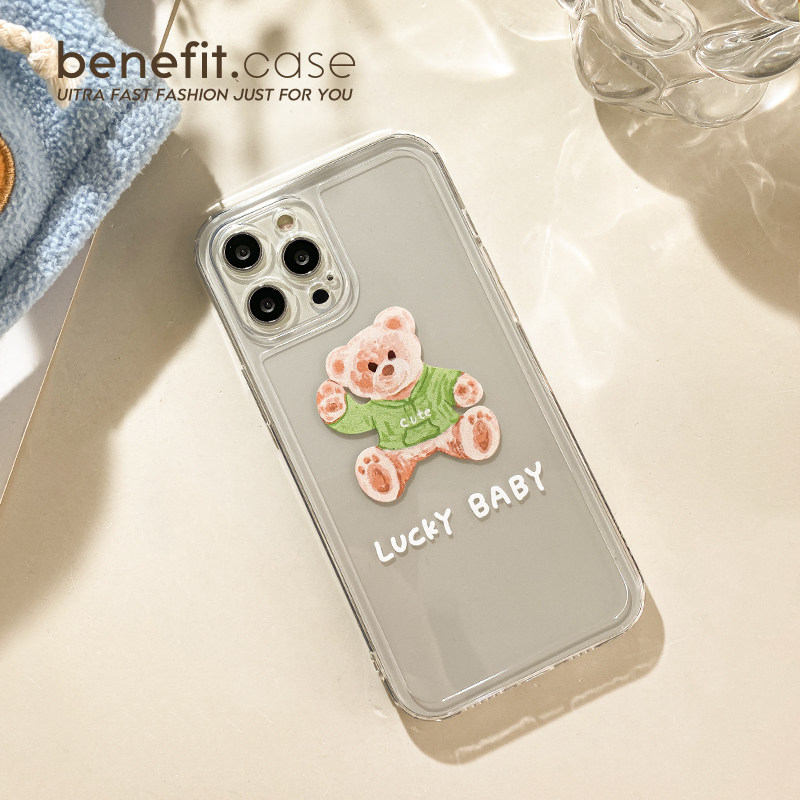 Benefit Japan-ROK cute thick cotton T bear application Apple 13promax mobile phone protection shell cartoon iphone12mini transparent xsmax teenage girl xr original 8