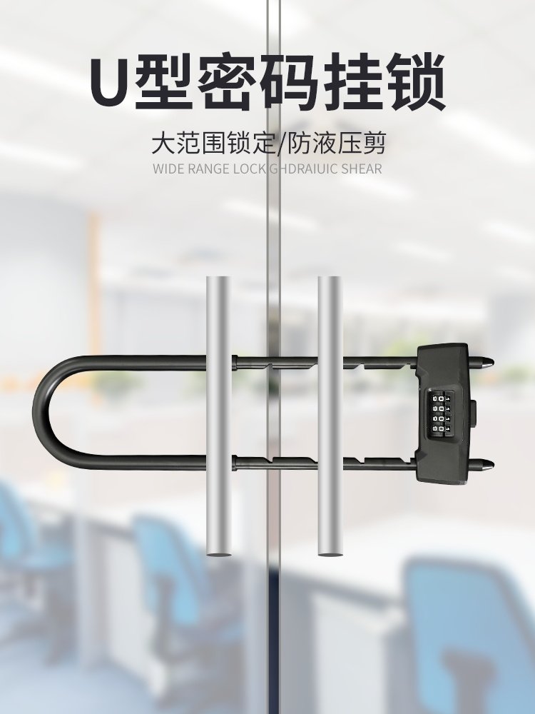 Glass door lock U lock lock double door insert lock glass lock push Ramen long lock shop u lock type outdoor U-shape lock-Taobao