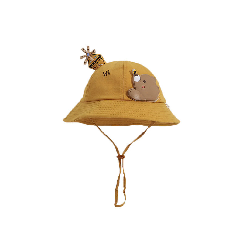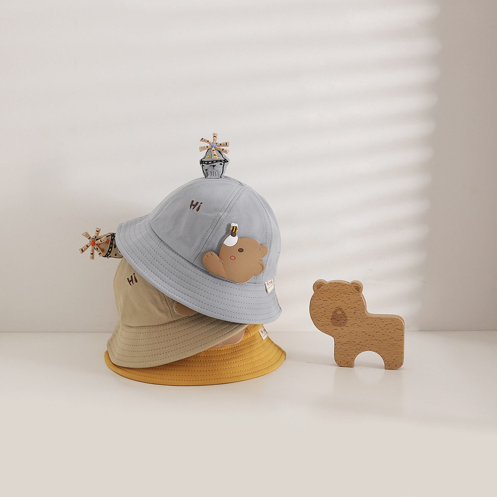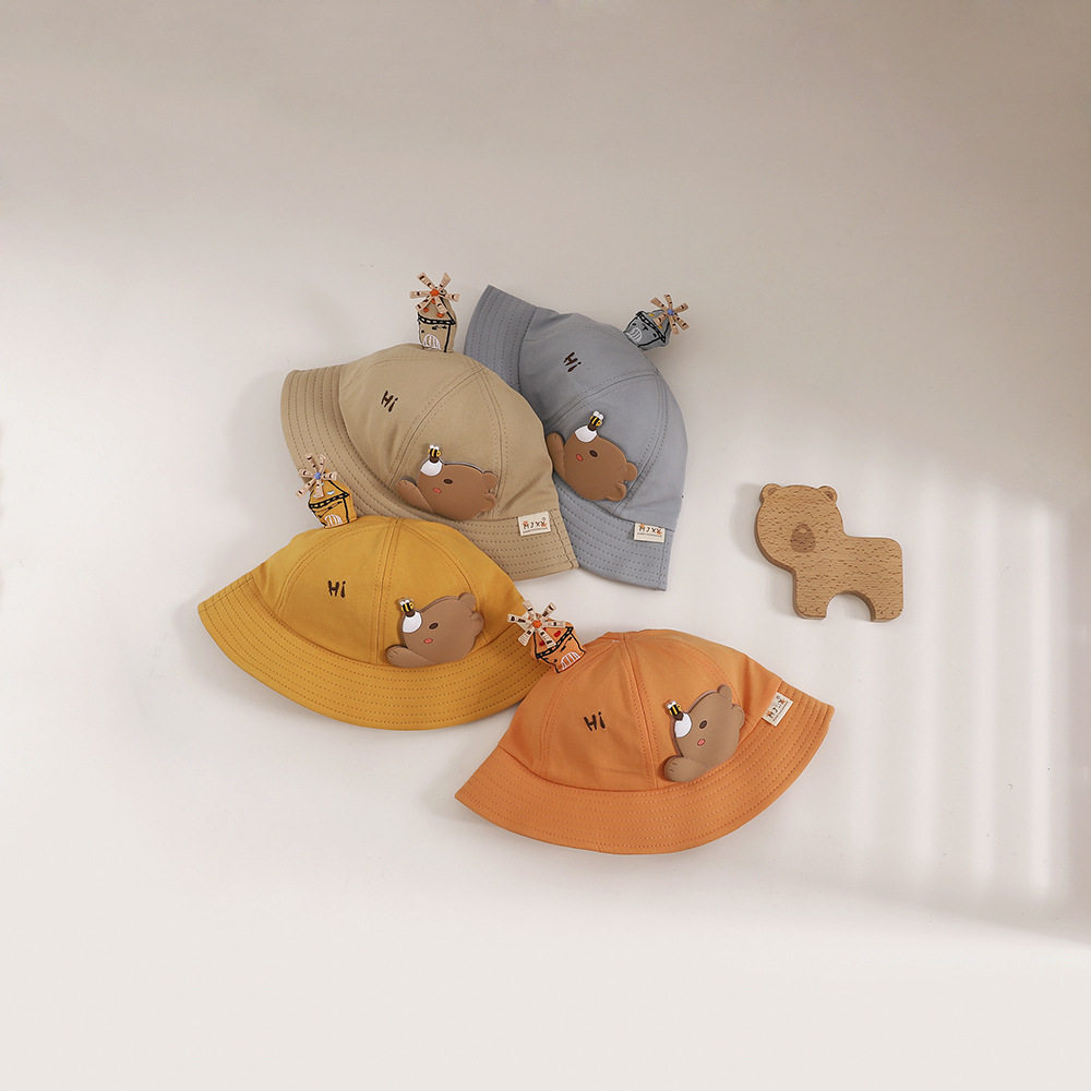 Children's hat 2022 Spring new super cute cute little bear baby basin cap solid windmill tentacle with baby fisherman hat