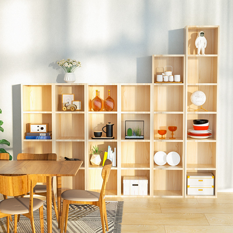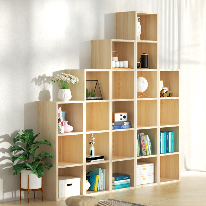 Solid wood bookshelf floor-to-ceiling bookcase log pine student children's shelf corner narrow seam unit grid cabinet customization