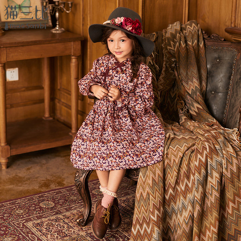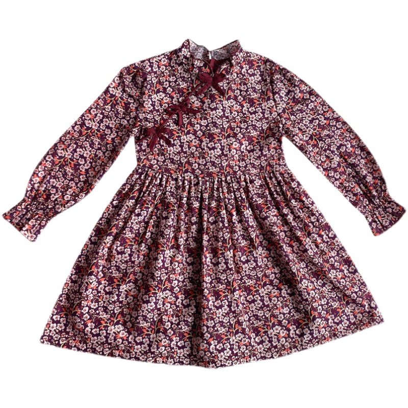 Girls Bangrobe Dress Spring Dress Children Chinese Wind Pure Cotton Sleeve Skirt Spring and Autumn Pie Crush Dress