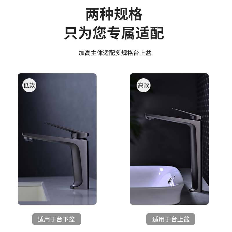 German wocam gun grey extended copper water cooling and hot faucet mouth wash face basin cosmetic room bathroom counter basin