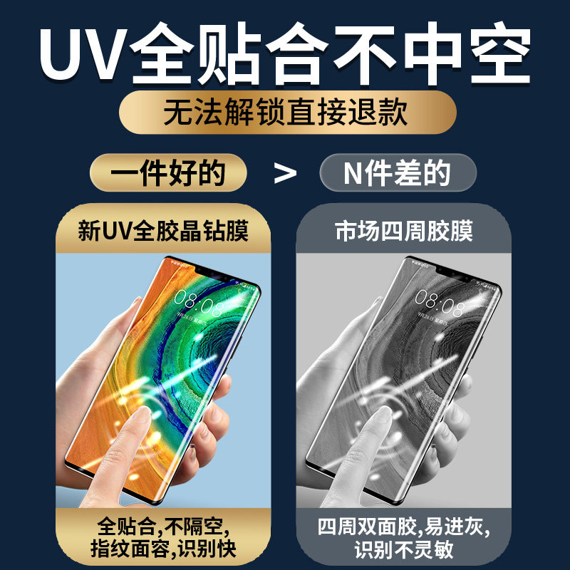 Huawei mate30pro tempered film UV full screen coverage mate30epro mobile phone protective film rs surface full coverage por full glue curved screen mt30pro film p0r