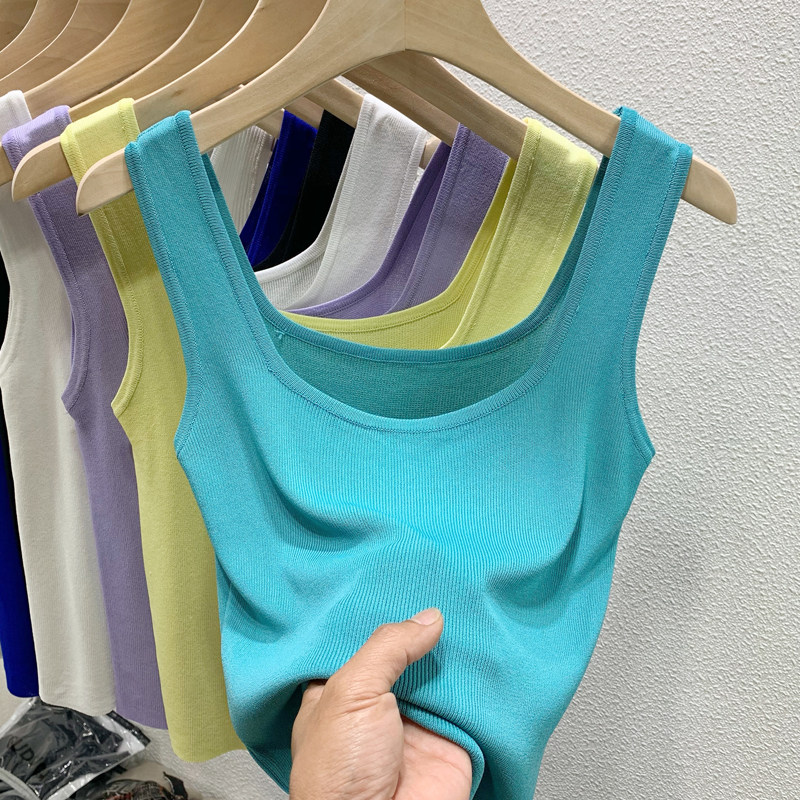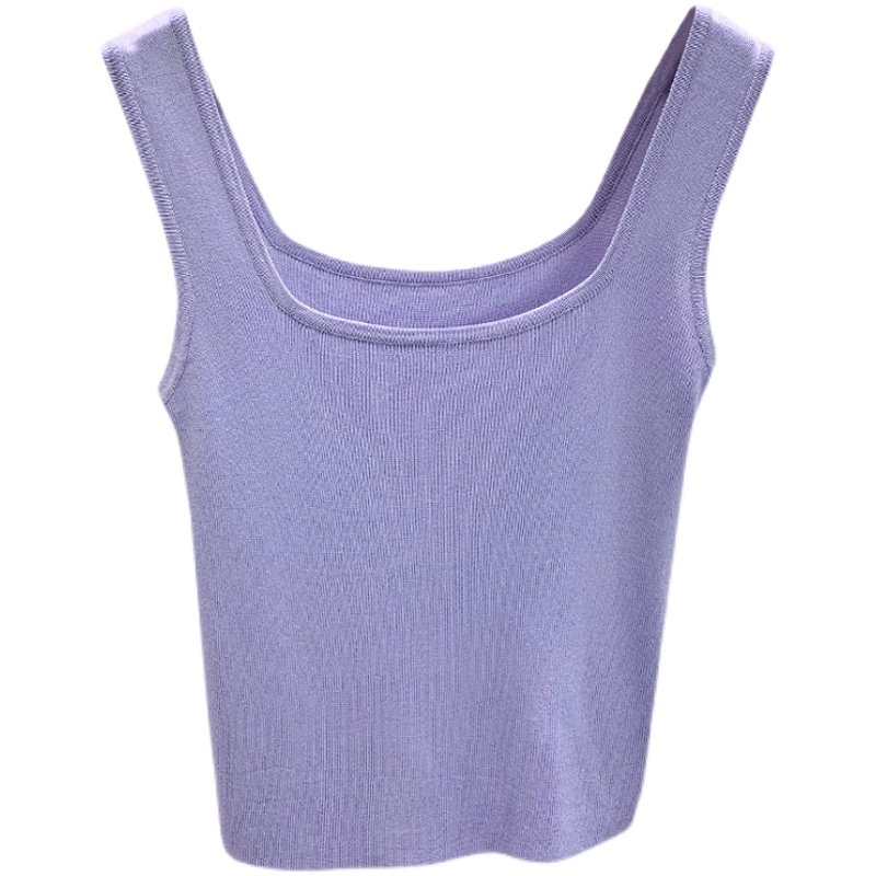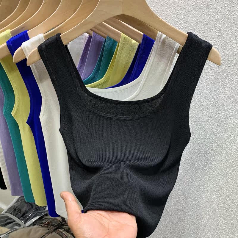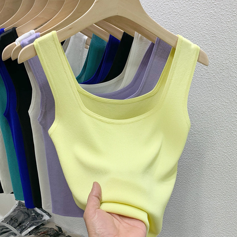 Port Wind Retro Gentleness 2022 New Temperament 100 Hitch Pure Color Square Collar Short Knit Harness Vest Woman