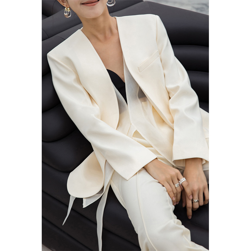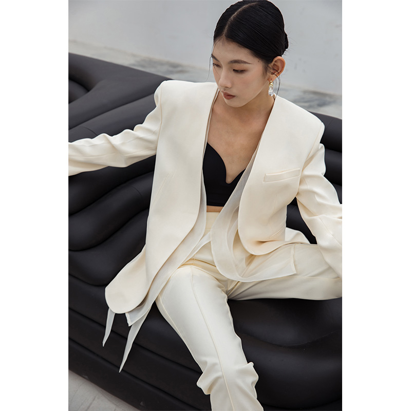 Cause No Collar Suit Temperament Brief Eu Root Yarn Splicing Fake two design Feelings Small loose Conspicugan Slim Coat