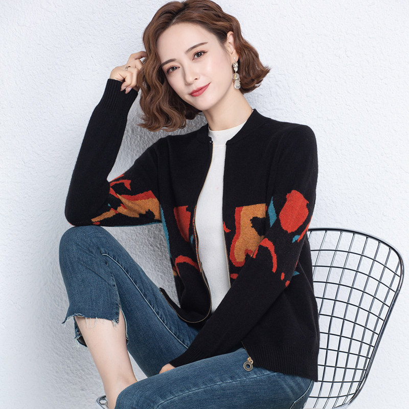 2022 Sheep Sweatshirt Lady Spring Autumn Season Long Sleeve Neckline Pleccable Fur Coat Jacket Splicing Loose large size knitted cardiovert