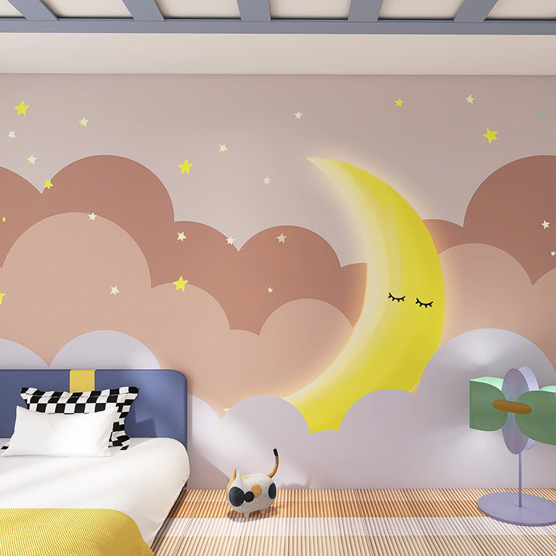 Cartoon rabbit moon children's room bedside background wall panel warm daughter's room bedroom integrated wall panel gusset wall