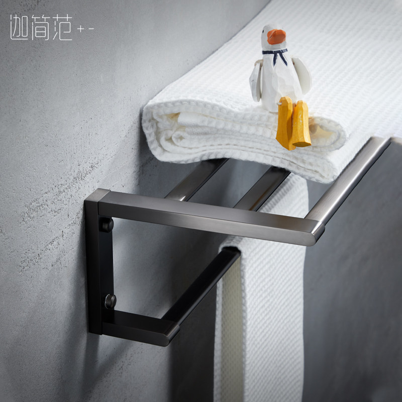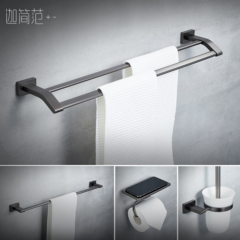Powder room punch-free bath towel rack dark gun gray stainless steel towel rack set home bathroom rack