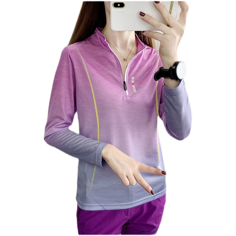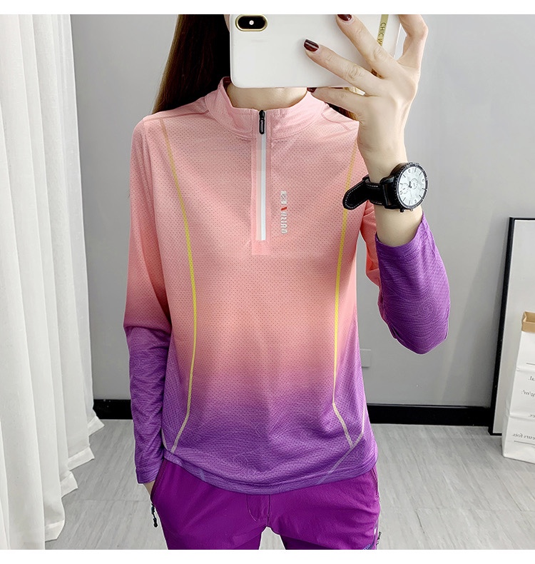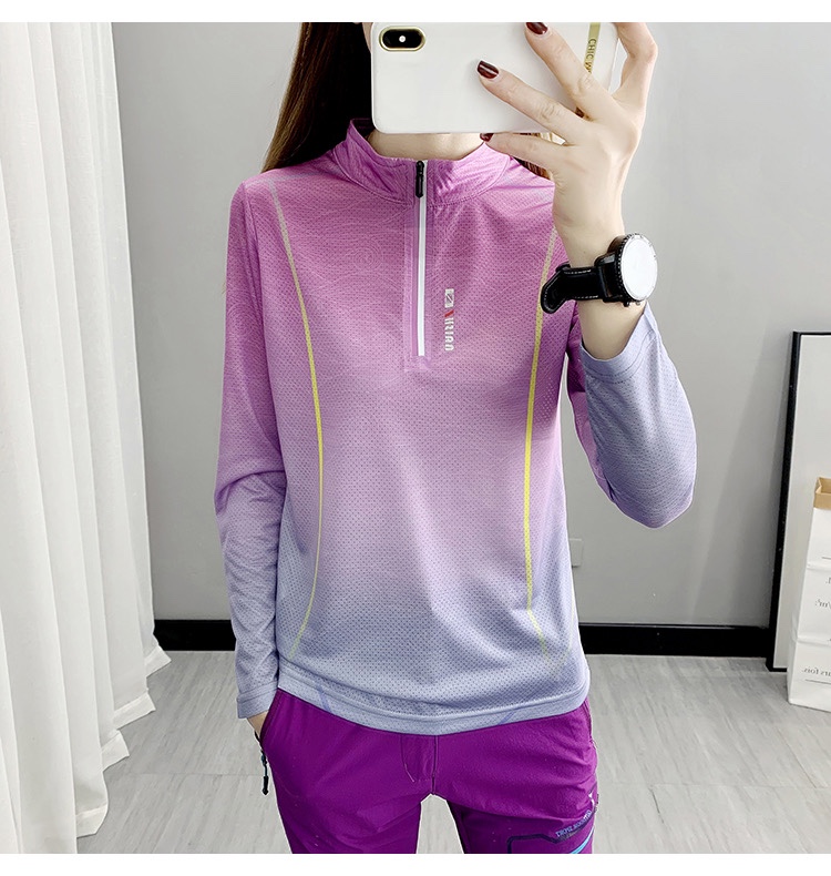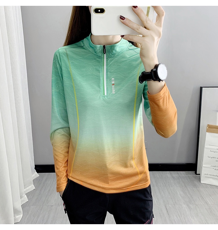 Quick-drying clothes T-shirt women's stand-up collar long-sleeved spring and summer thin elastic gradient color outdoor anti-UV quick-drying clothes