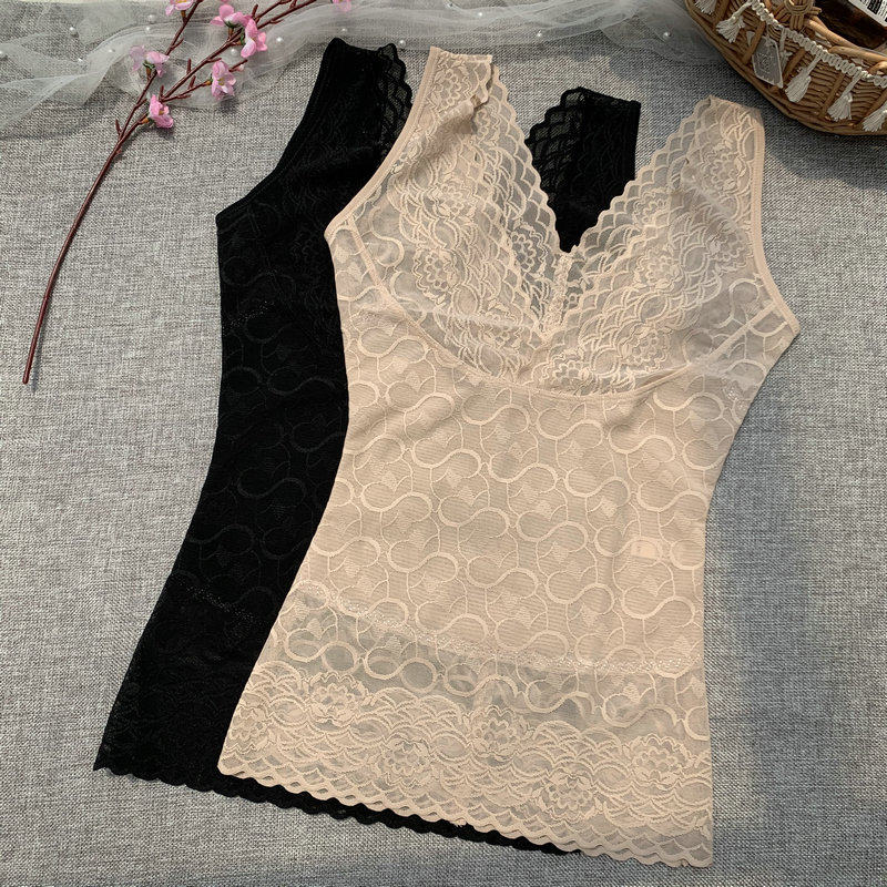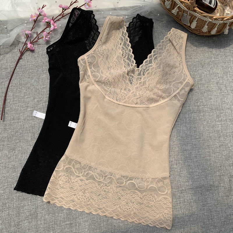 2022 spring and summer shape-jacket V collar Sexy bundle waist collection lace splicing beauty body thin and bottom vest woman with no marks