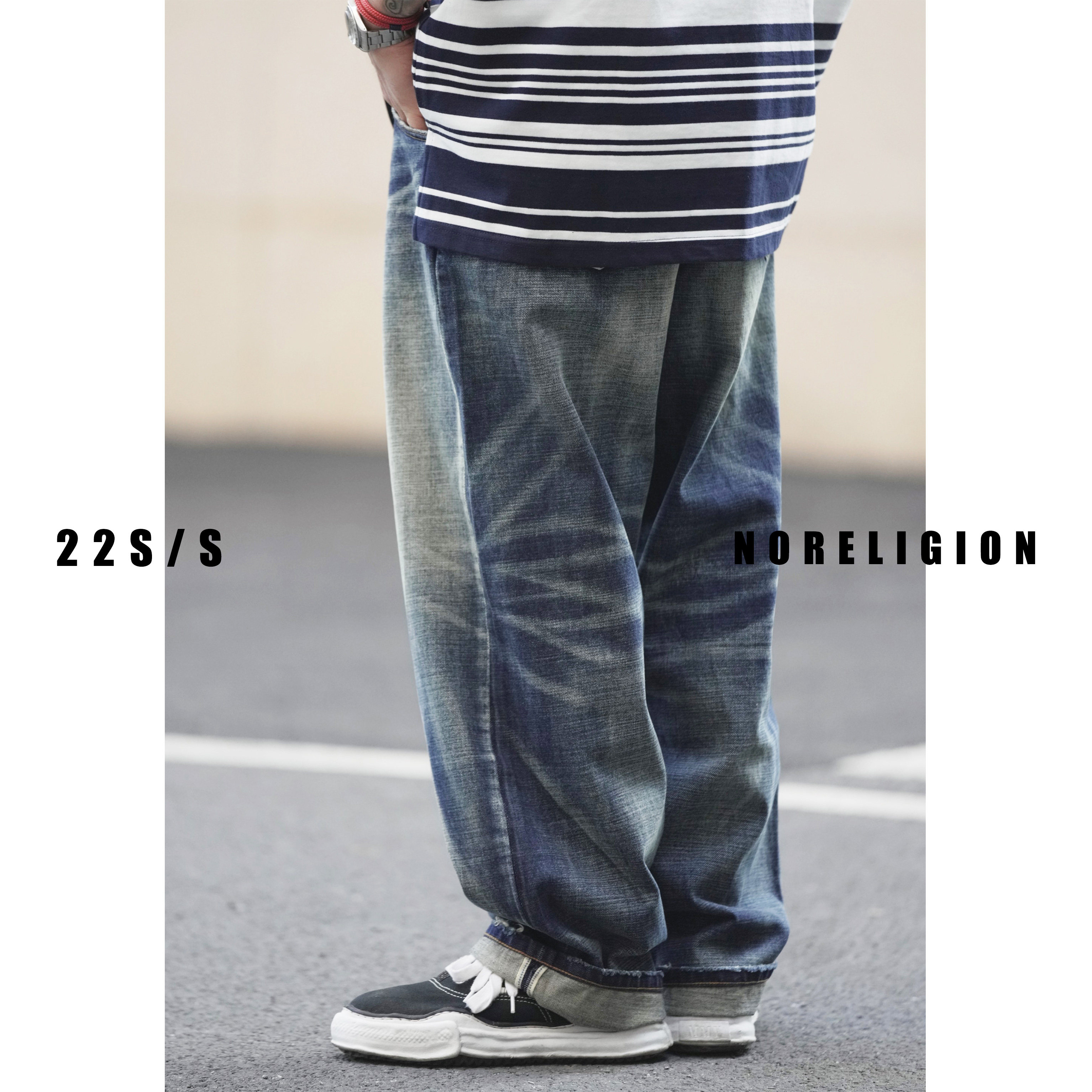 NORELIGION Spring Japanese Straight Loose Washed Old Red Ear Workwear Jeans No Faith 01-16