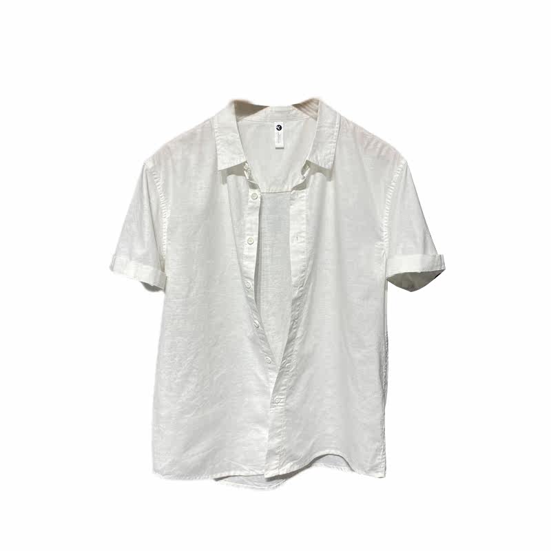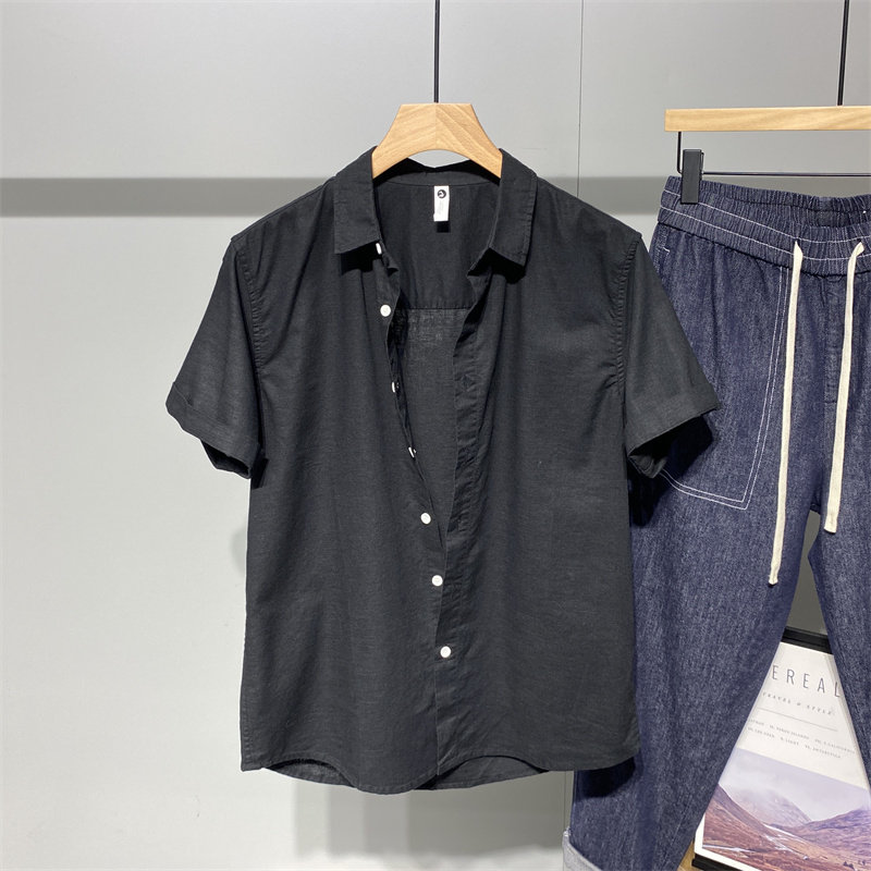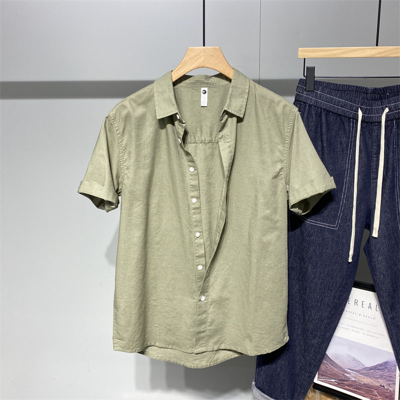 Advanced senses pure color flax short sleeve shirt male summer day family Chauffins personality handsome loose 100 lap shirt