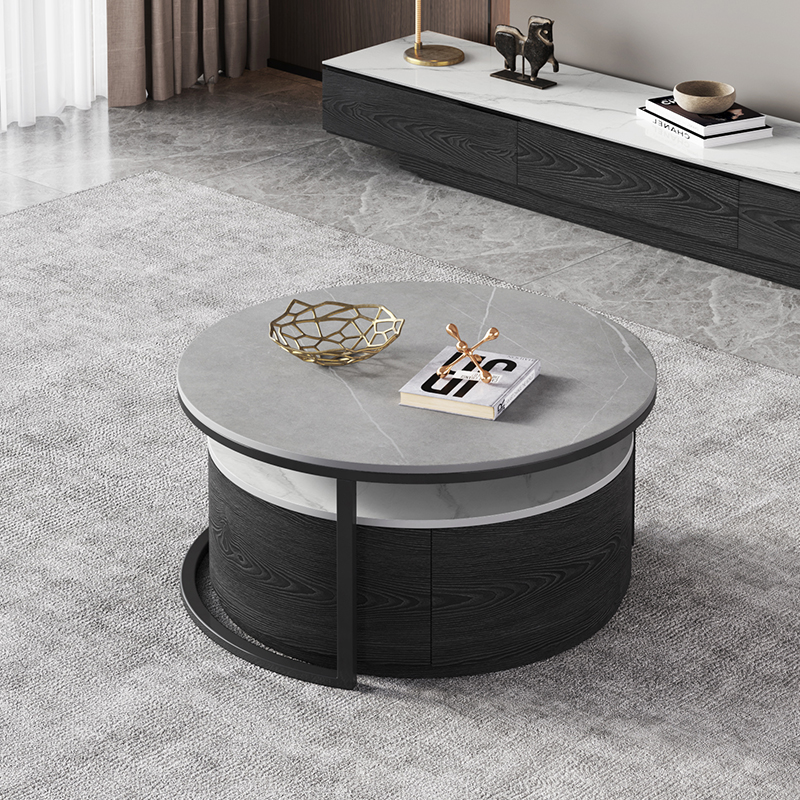 Nordic style round telescopic coffee table storage box living room home slate light luxury modern small apartment multifunctional net red