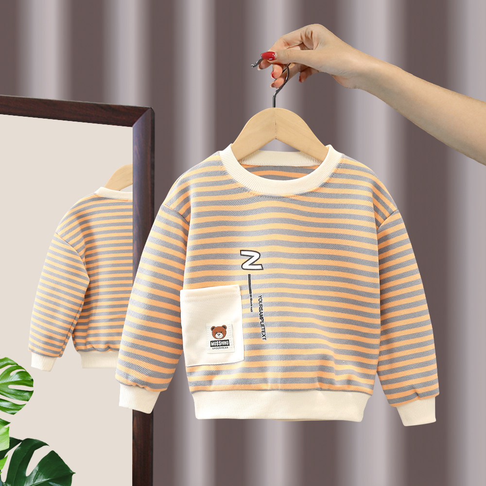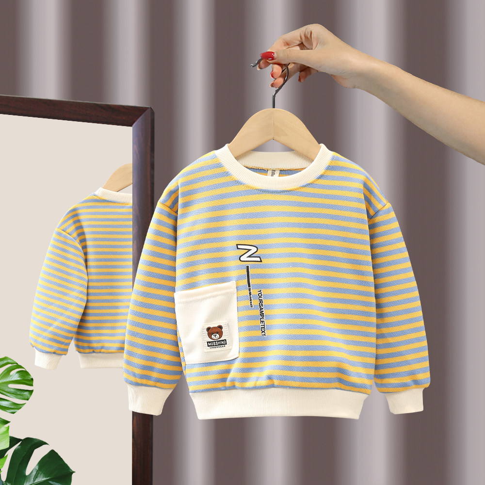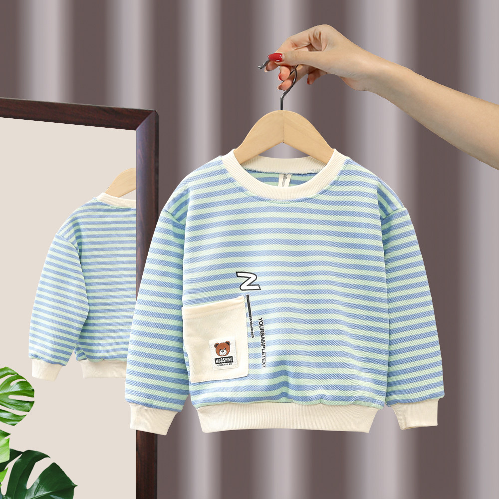 Children's spring striped casual blouse boy pure cotton round collar jacket hooded baby 100 hitch undershirt long-sleeved child