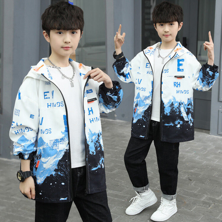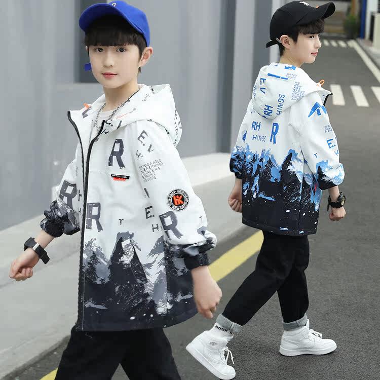 Boys spring jacket 2022 new children's spring jacket handsome middle-aged children's trench coat boy's top Korean version of the tide