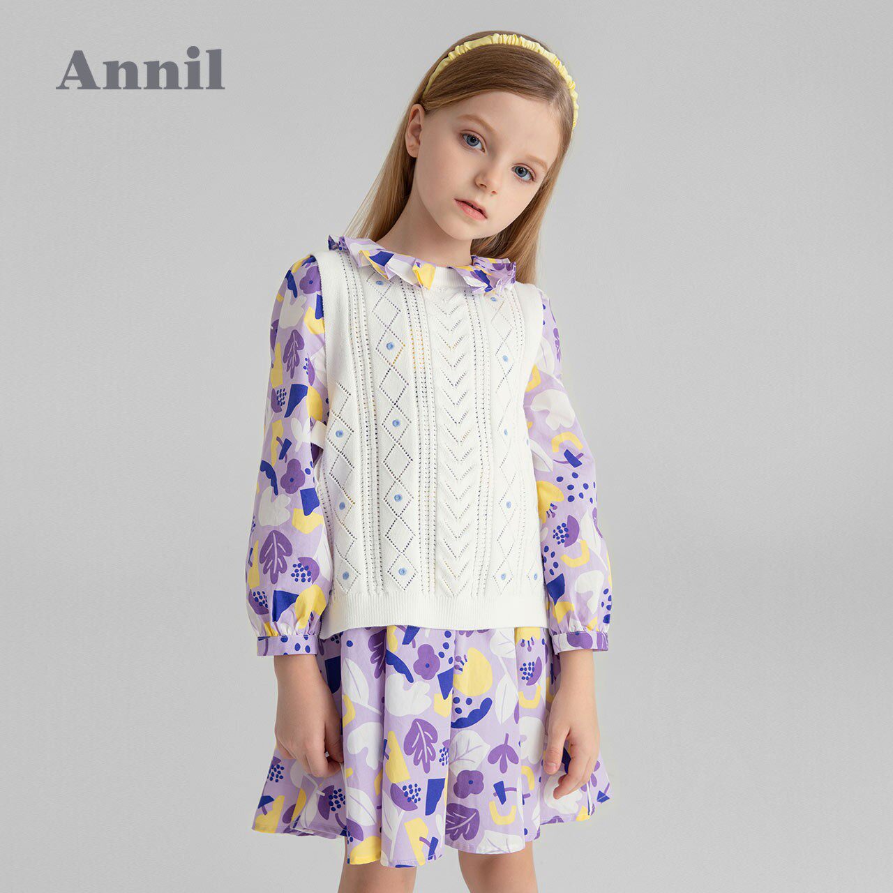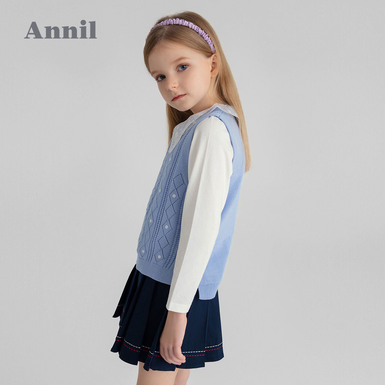 Annil Child Clothing Girl Spring Autumn Clothing Pure Cotton Knit Cotton Thread Sweater Waistcoat Waistcoat EG132401