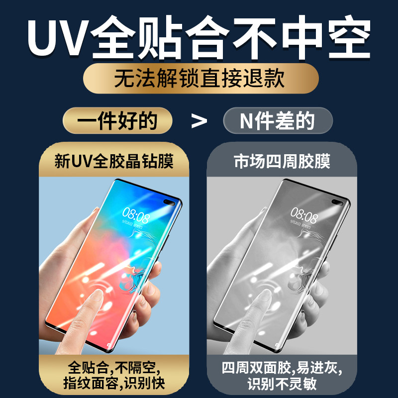 Samsung s10 steel film uv full glue s10 mobile phone film 5g version full screen cover anti-blue light s10 ten no black side full package protective film s10plus curved surface full-fit glass adhesive film suitable for