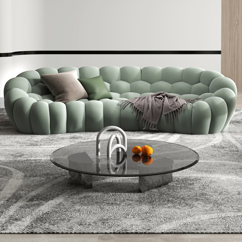 Light luxury wedge-shaped coffee table tempered glass home living room small apartment simple stainless steel round coffee table side a few minimalist