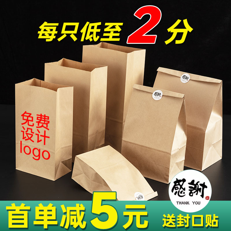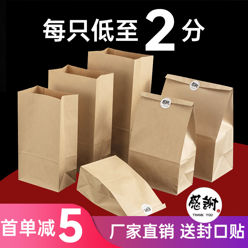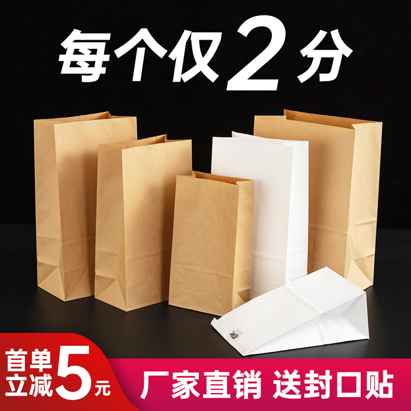Food Grade Kraft Paper Bag Takeaway Snack Bread Packed Fridge Containing Burger Anti-Oil Disposable Packaging Bag