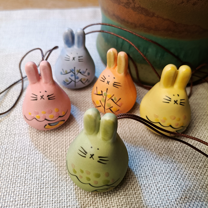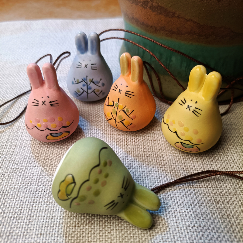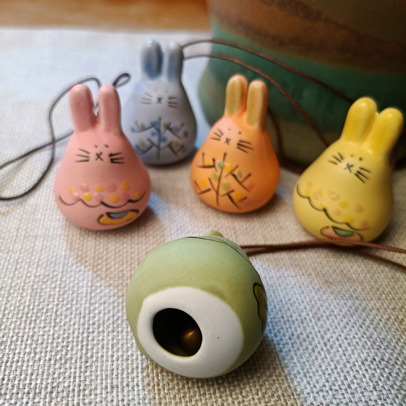 Ceramic Bag Chain Pendant With Five Sets Of Wind Bells Cartoon Cute Mini Car Pendant Creative Little Animal Ornament Door Decoration