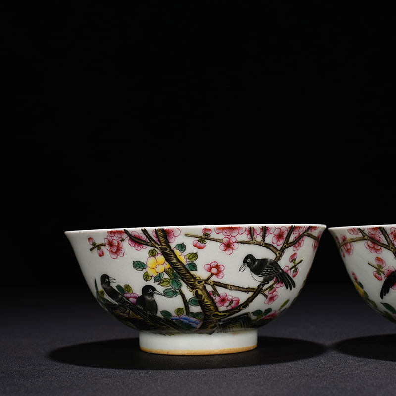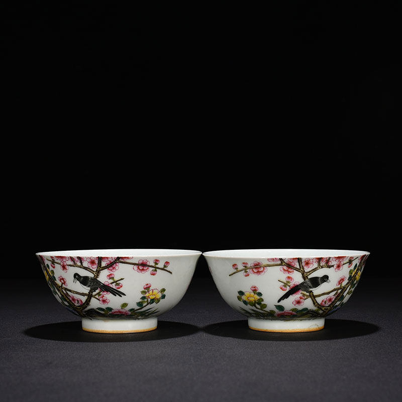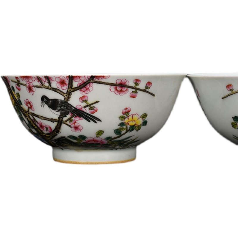 Qingyong Zheng Enamel Color magpie Plum Blossom Grain Bowl