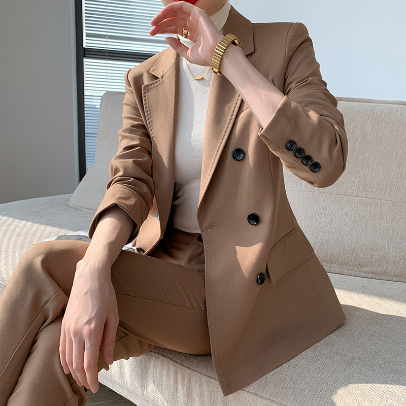 Temperament high-end suit suit women's double-breasted design khaki professional work clothes formal suit pants