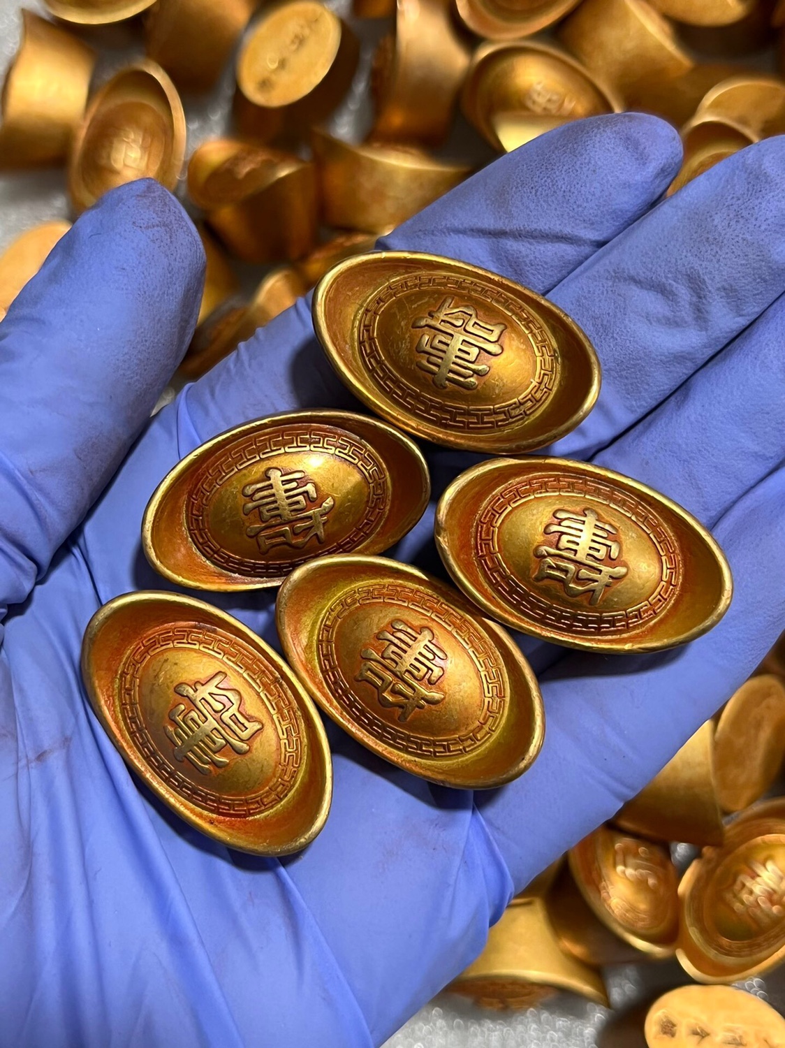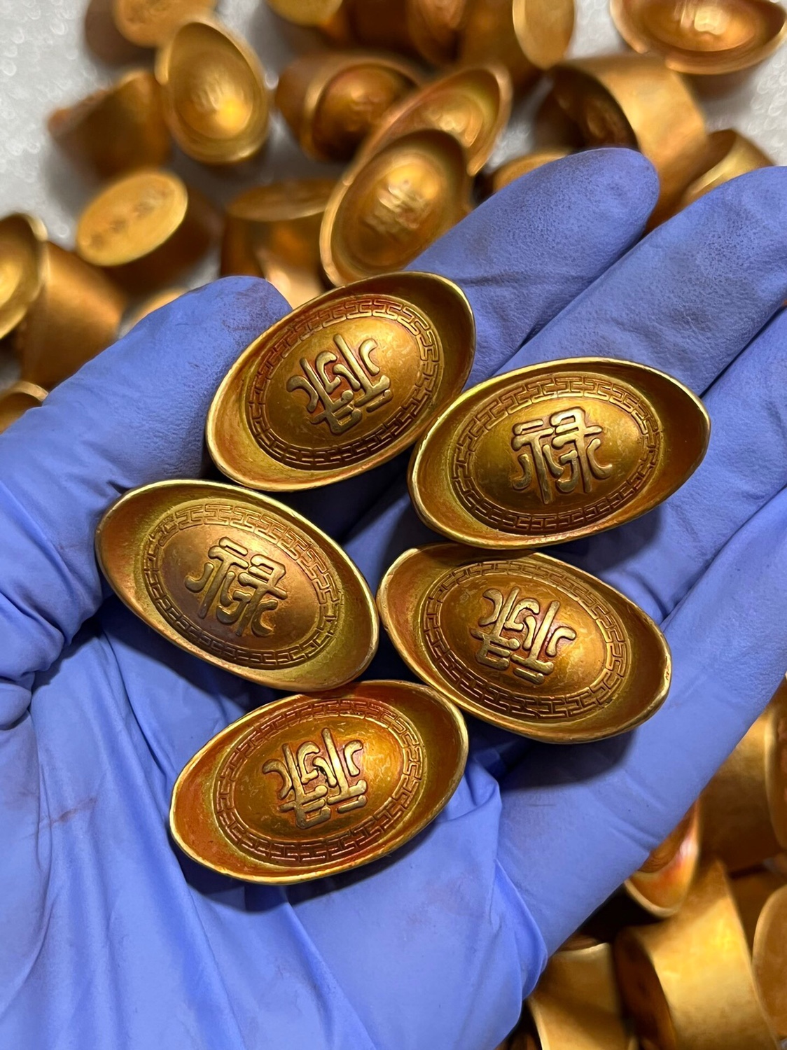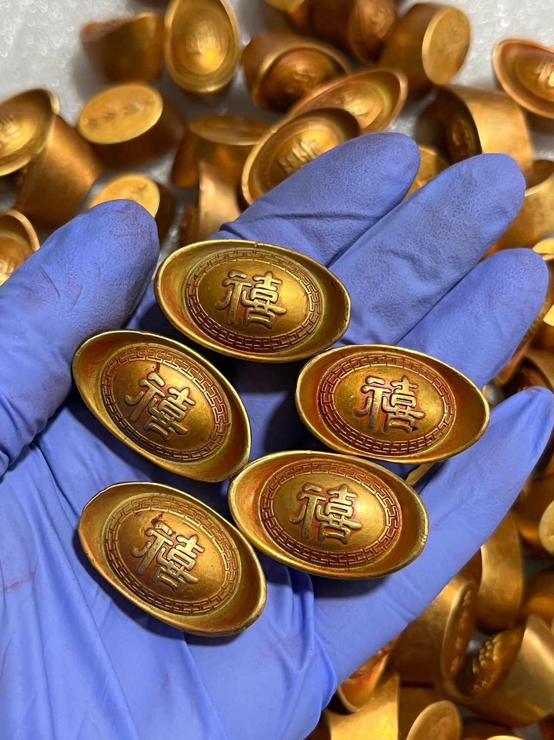 Great Qing silver ingots gold ingots gold ingots brass gold-plated craft gifts ornaments Fu Lu Shou Xi Cai small ingot ornaments single price