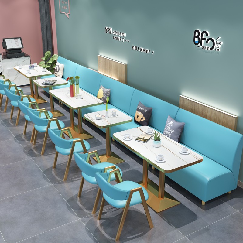Retro Cafe Sofa Western Restaurant Bar Leather Table and Chair Combination Milk Tea Shop Negotiation Leather Art Double Card Seat
