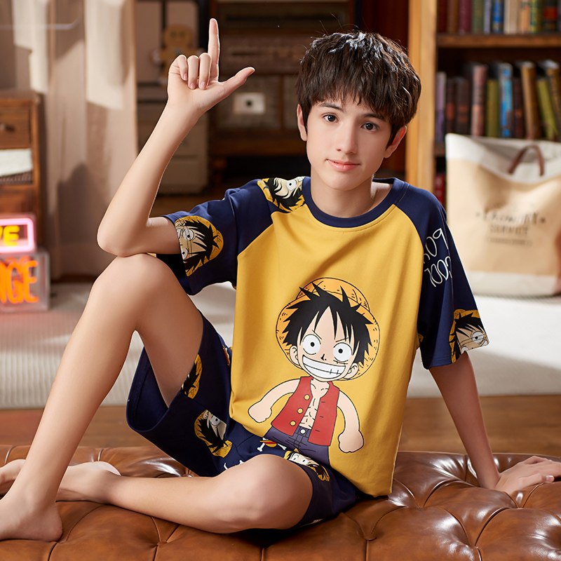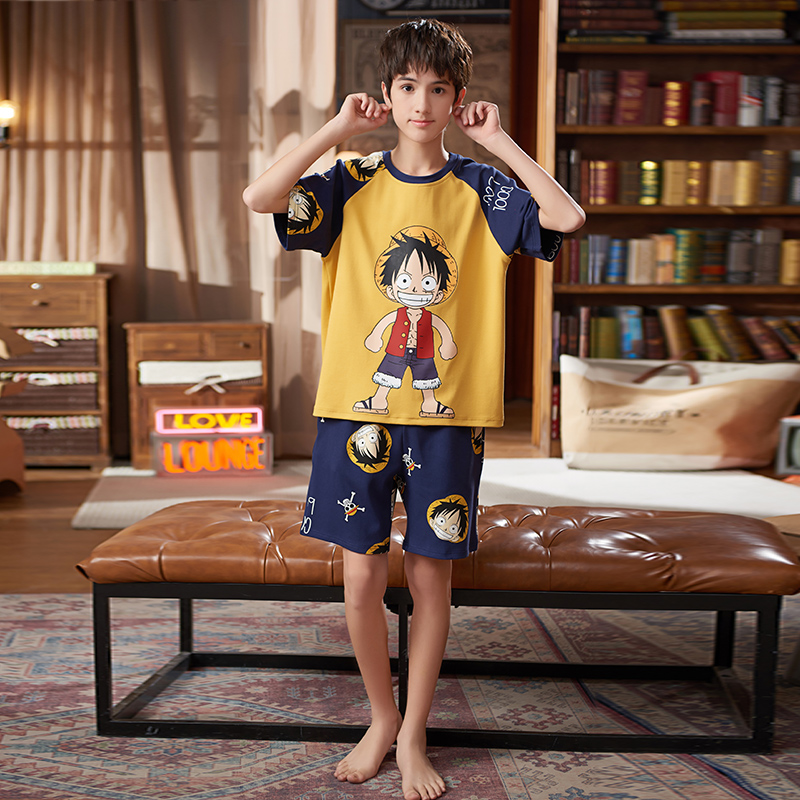 Boy sleepwear Children Summer thin Pure Cotton Short Sleeve Suit CUHK Boy 12 Year Old Boy Cartoon Summer Home Clothes