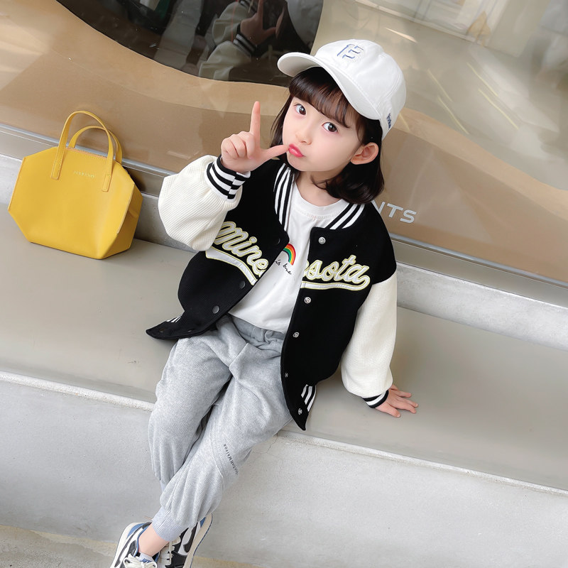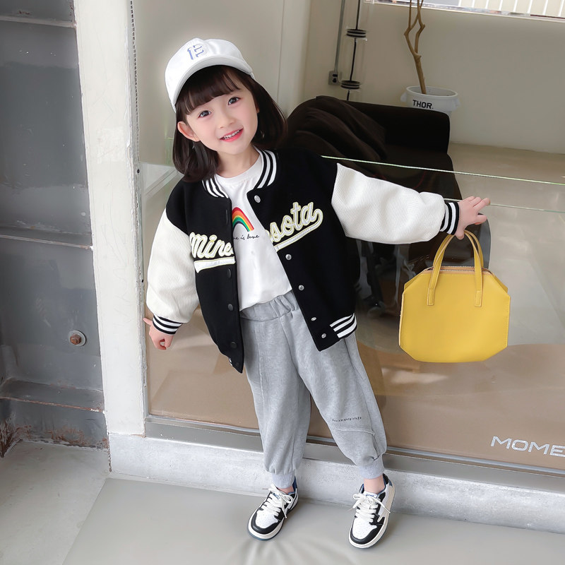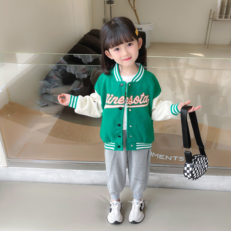 Girl Baseball Uniform Spring Autumn Suit 2022 New Children's Foreign Palate Nets Red Trendy Middle Children's Baby Two Sets