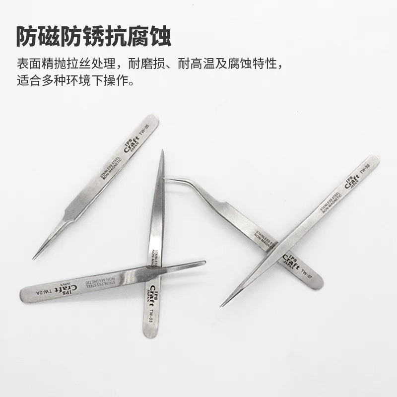 Japan IPS Stainless Steel Elbow Long Tweezers Cosmetic Precision Antistatic tool Electronic maintenance pointed small tweezers