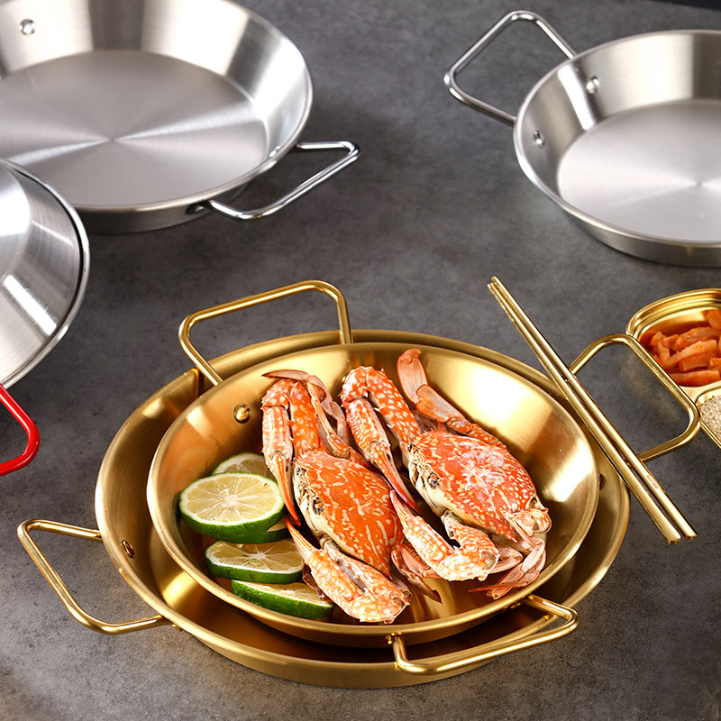 Thickened stainless steel seafood rice pot crayfish plate seafood plate flat-bottomed fried chicken burger snack plate Korean pasta plate