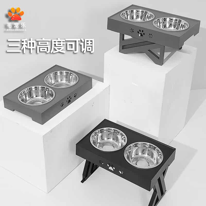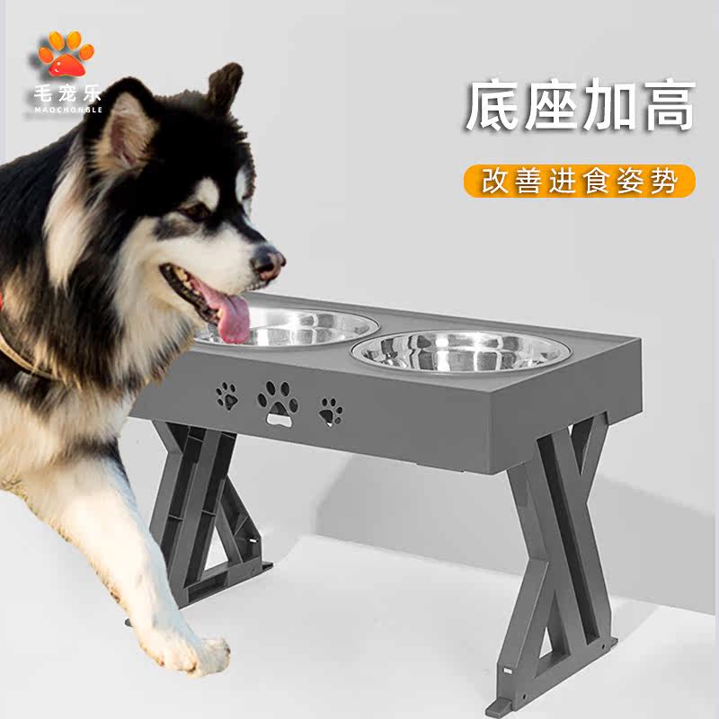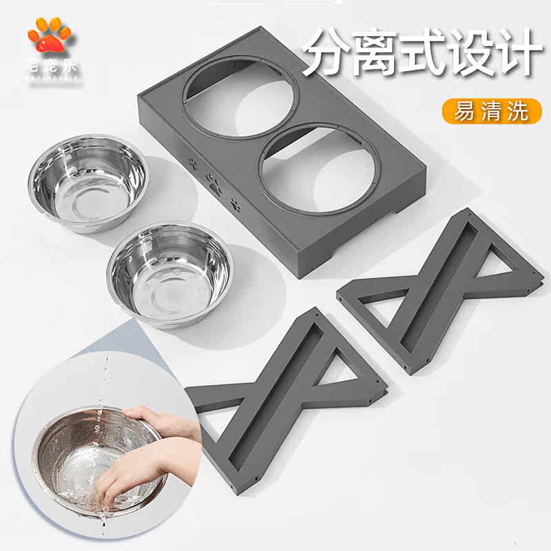 Anti-slip dog basin medium and large dog table rice bowl cervical vertebra protection pet stainless steel double bowl high foot anti-overturning water dog bowl