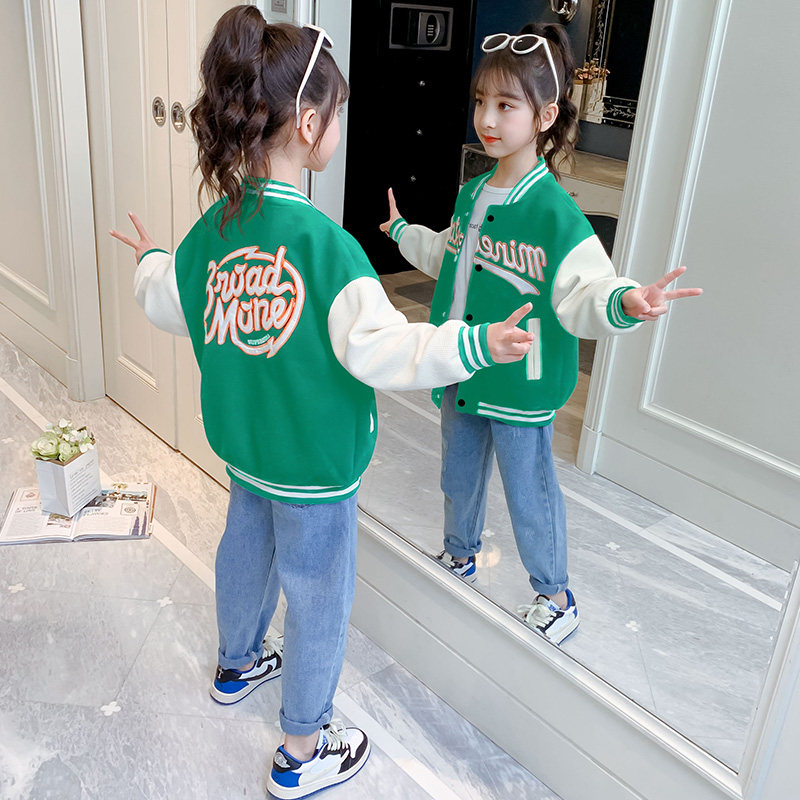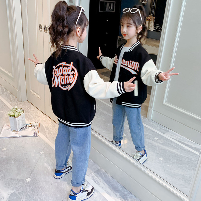 Girls spring coat 2022 new children's Western style Korean version of the single-shirt net red jacket casual baseball uniform big children