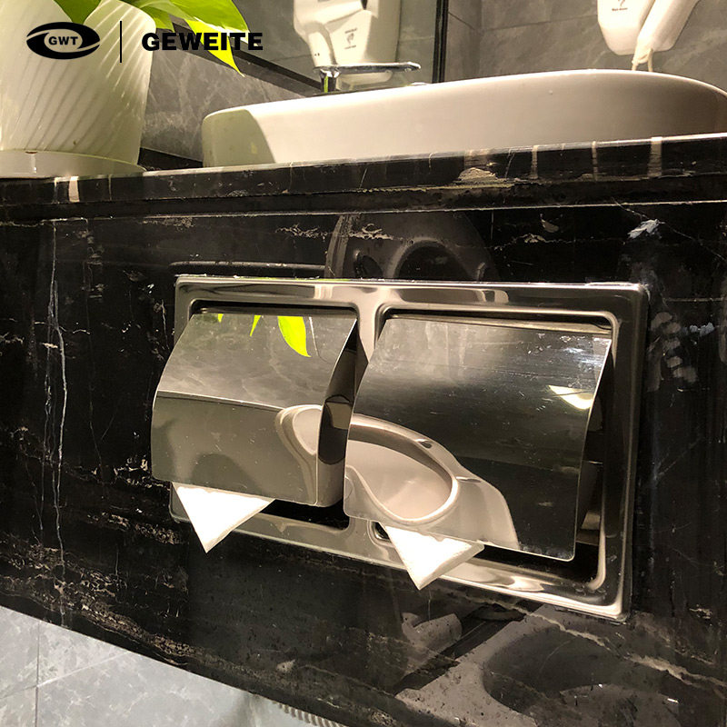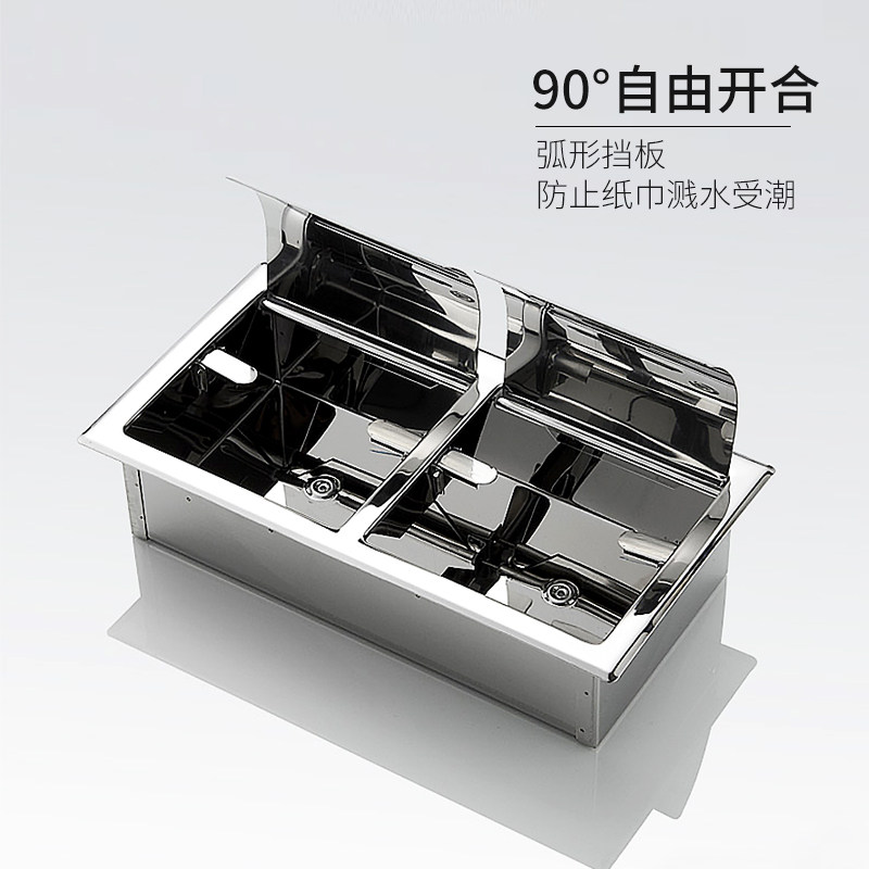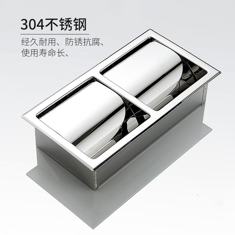 Hotel Concealed Paper Towel Rack Double Drum Toilet Paper Rack 304 Stainless Steel Entrance Wall Style Paper Towel Box Embedded Toilet Paper Rack Dressing Room