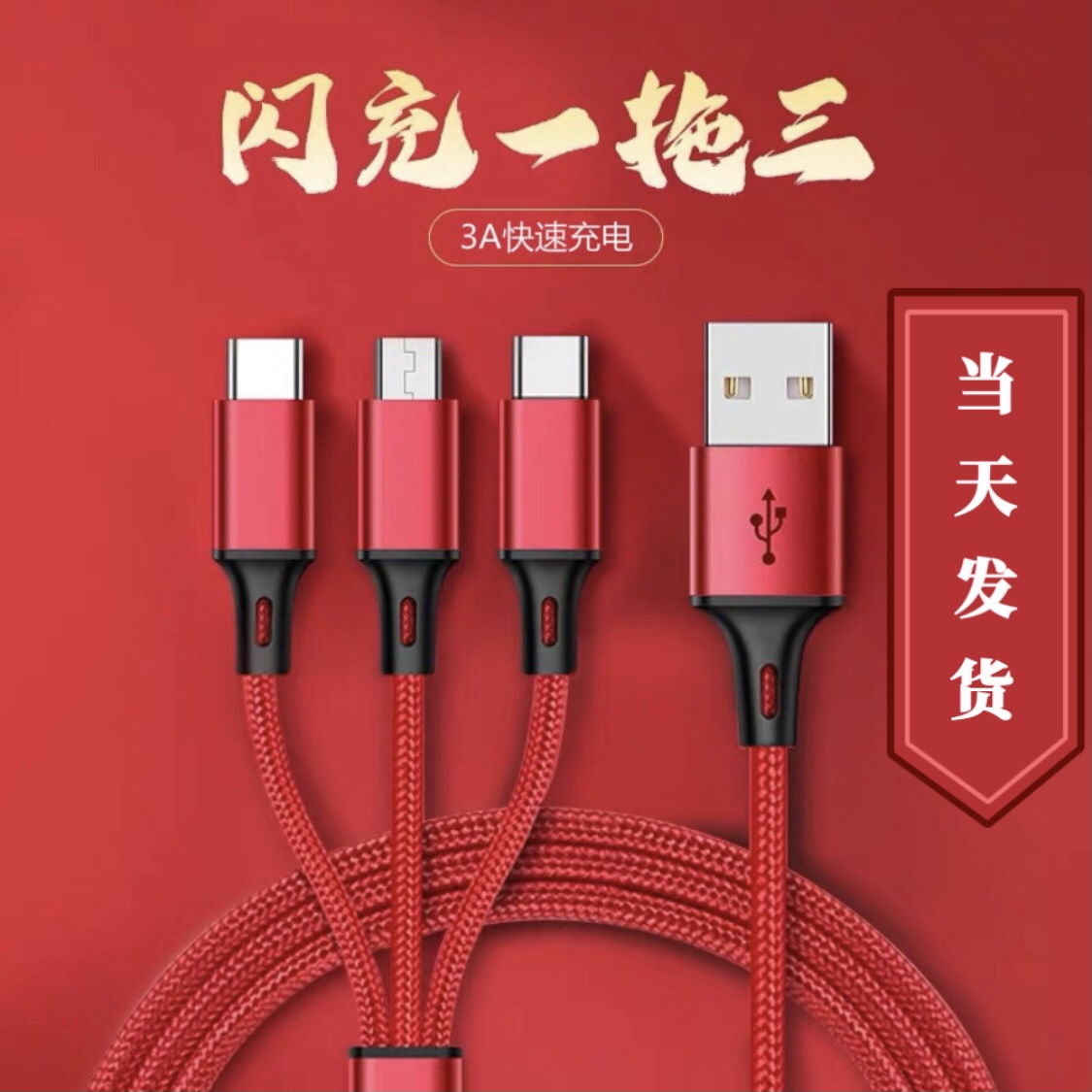 One drag triple phone 3A Fast charging data line applies Apple Android type-c flash-filled three-in-one charge wire
