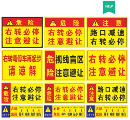 Large truck bus turn right and must stop paying attention to avoiding sight blind area reflective marking car stickers for dangerous cue strips stickers