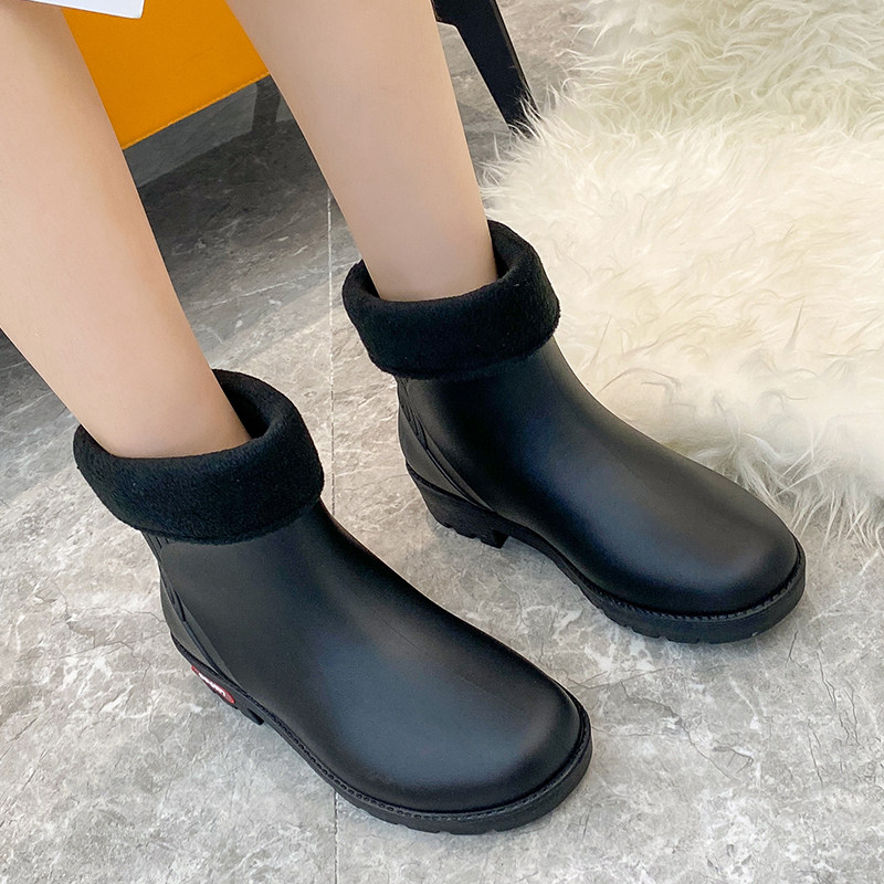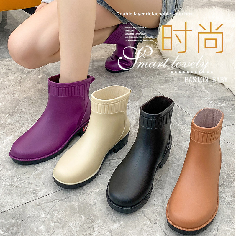 Rain boots women's waterproof anti-skid water shoes Japanese fashion style outer wear short tube rain boots outdoor work thick-soled rubber shoes women