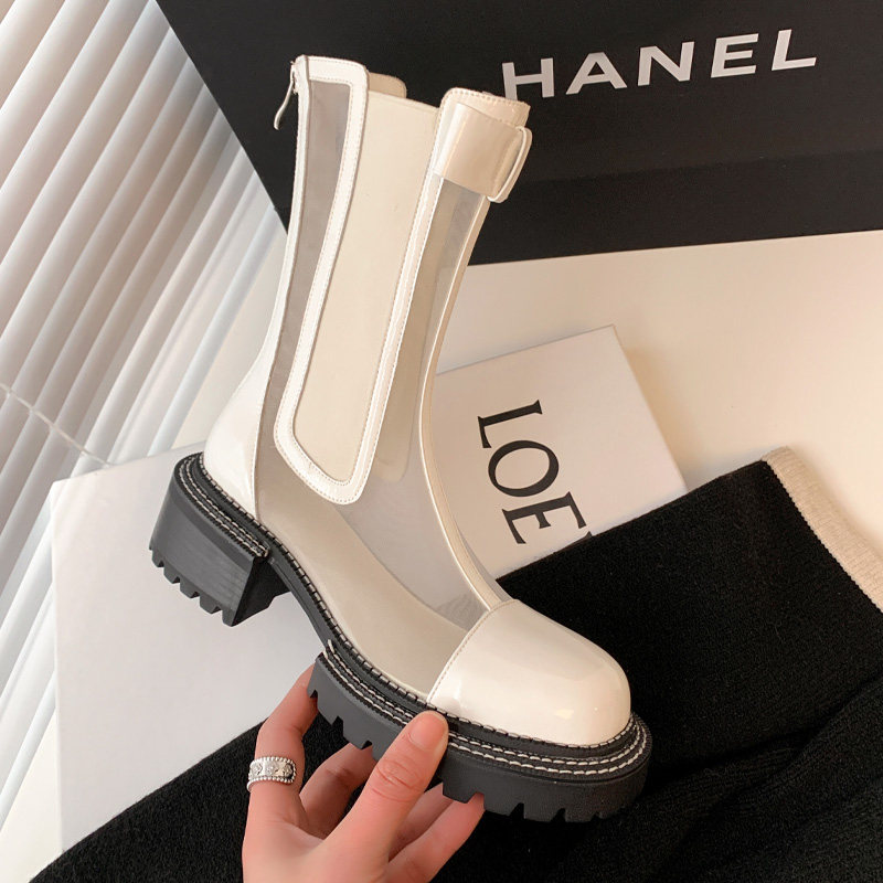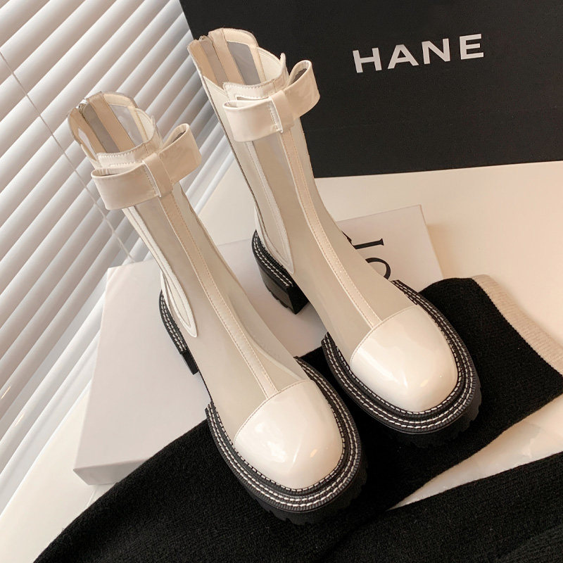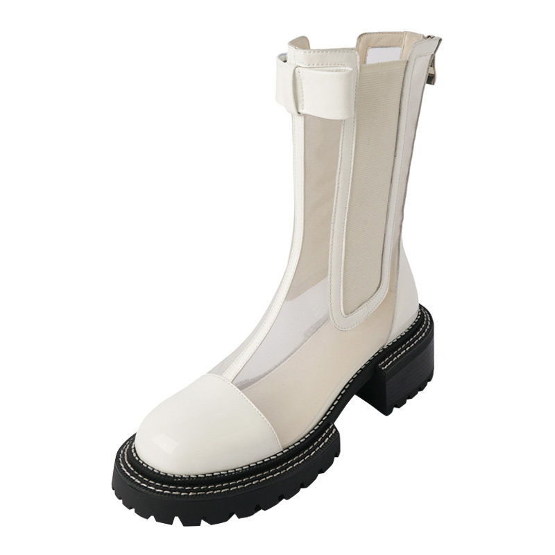 Genuine leather mesh yarn cool boots Hollowed-out Martin Boots Woman Summer Thin butterfly knot white short boots Spring and autumn thick bottom mesh boots