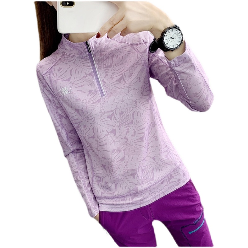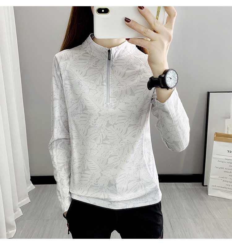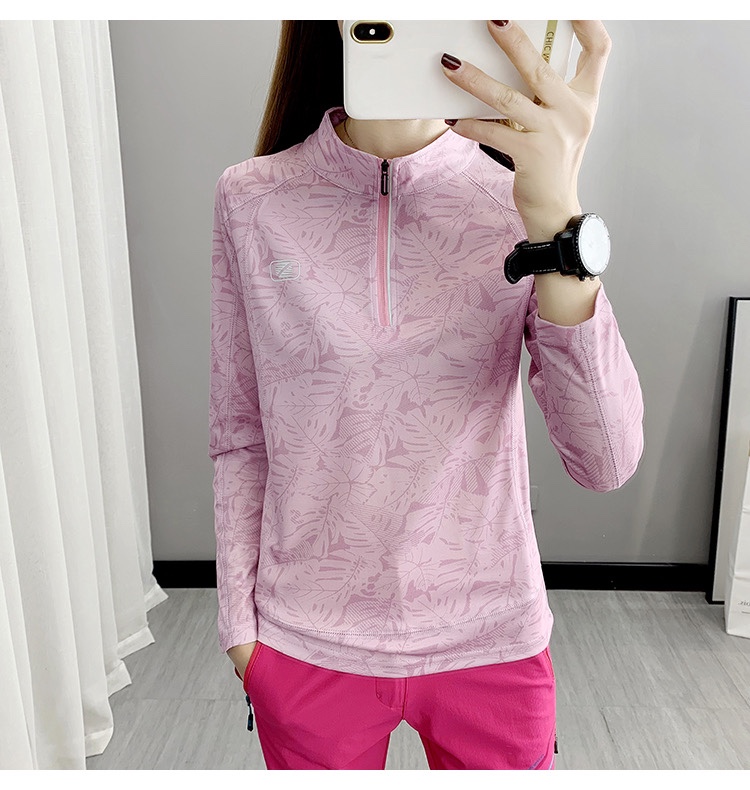 Maple Leaf Printed Speed Dry Clothes Long Sleeves Women Stand Spring Summer Thin Section Outdoor Running Riding Sports Hiking T Fast Dry Clothes