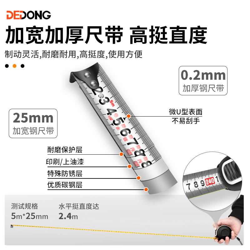 Measuring tape 5 m Home Mini small high-precision abrasion-proof ruler measuring thicken plus hard self-lock box ruler lap ruler