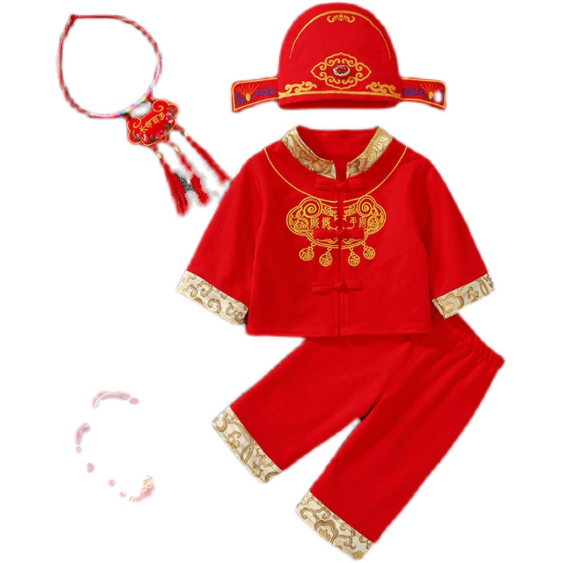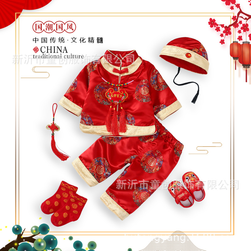 Children's baby full moon jumpsuit 100-day catch week clothes baby boy Chinese style spring and summer festive one-year-old Tang suit