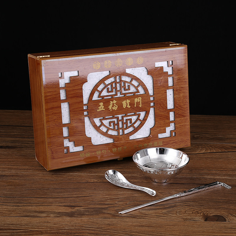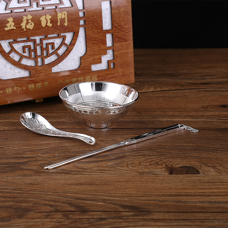 Five Fu Parting Doors Silver Plated Bowl Spoon Chopstick Three Sets Metal Craft Gifts Swing Accessories Insurance Bank Will Sell Gifts