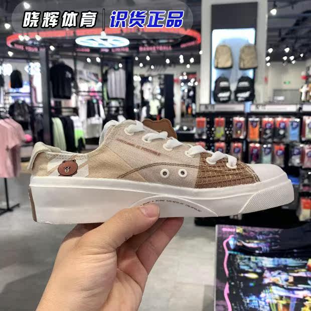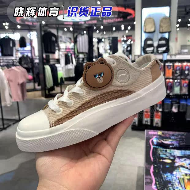 Li Ning 2022 Brown Bear joint Korean version of cartoon classic woman Low Gang Leisure Canvas Shoes AGCR280