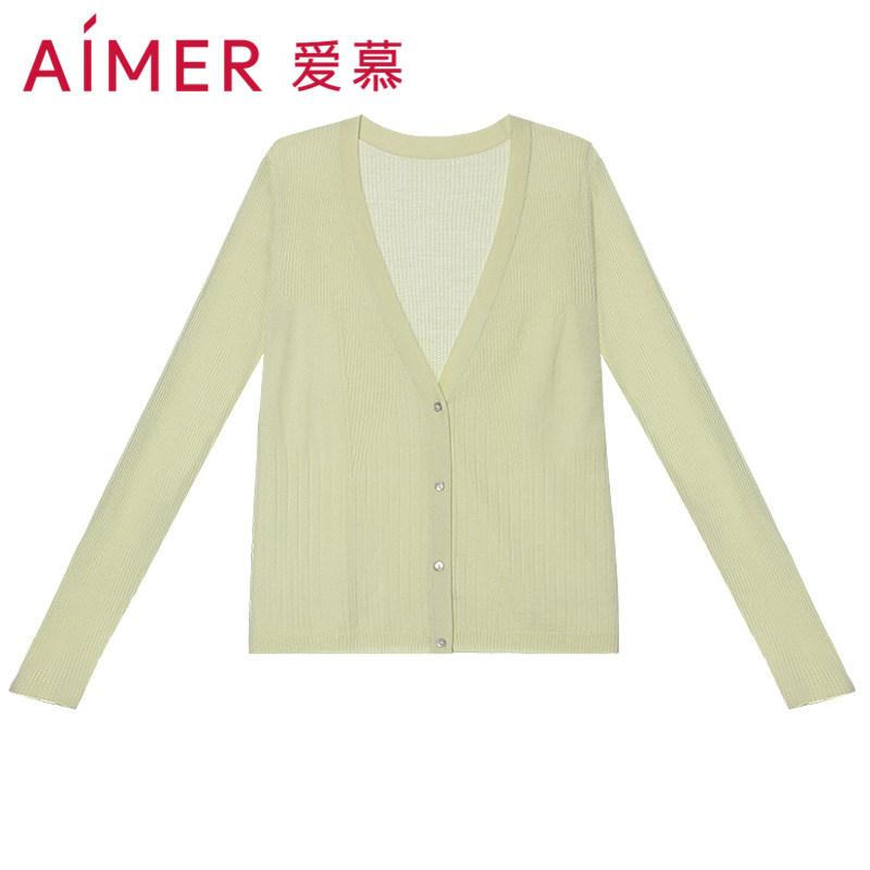 AIMER22SS light-fit knit long sleeve cardiovert blouse AM727352