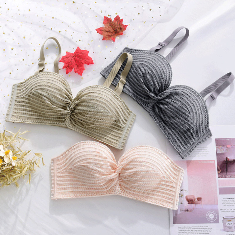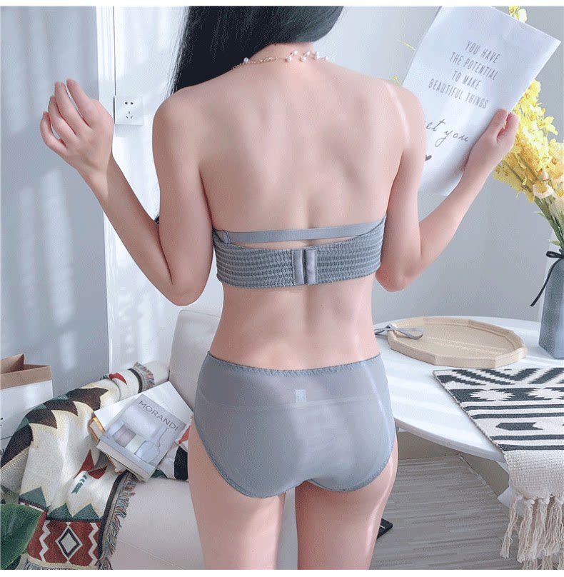 Triumph underwear set summer sexy strapless non-slip bra bride wedding small chest gathered underwear