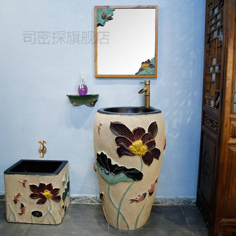 Dwarf Bamboo Festival Leading Monument in Mirror Beginlotus column basin (without tap) First Dutch set of spring and autumn Mao towel rack Howind mop pool lotus Round mirror small lotus column Set of lotus pelvis column (without tap) lotus leaf set