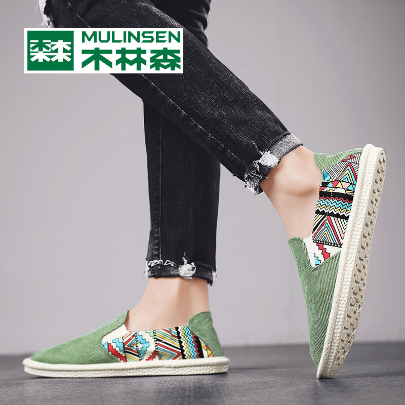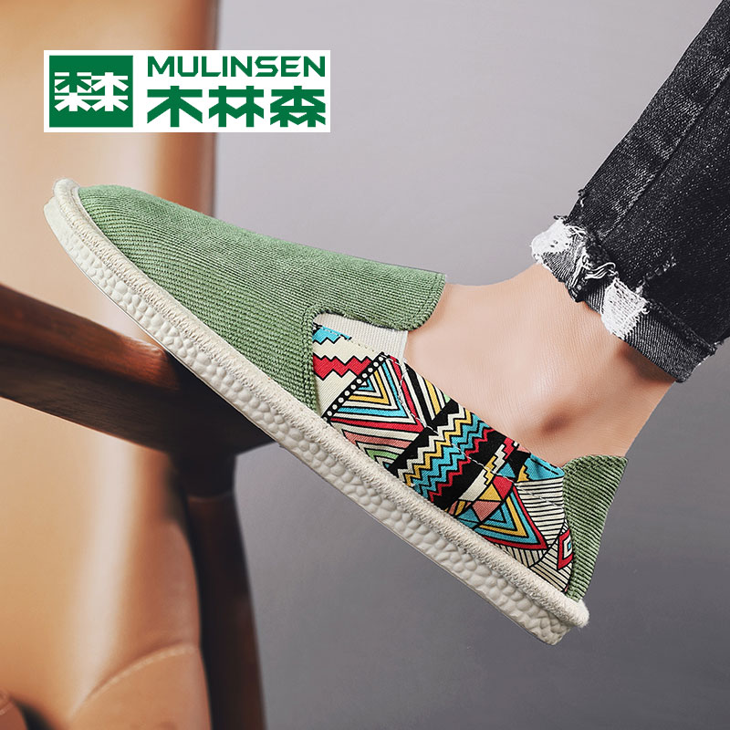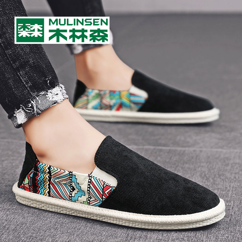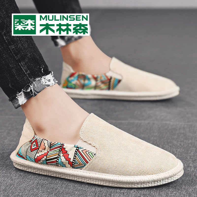 Wood Linson Shoes Men's Spring Slim Models Old Beijing Cloth Shoes Casual Men's Summer Breathable One Foot foot Canvas Shoes Men