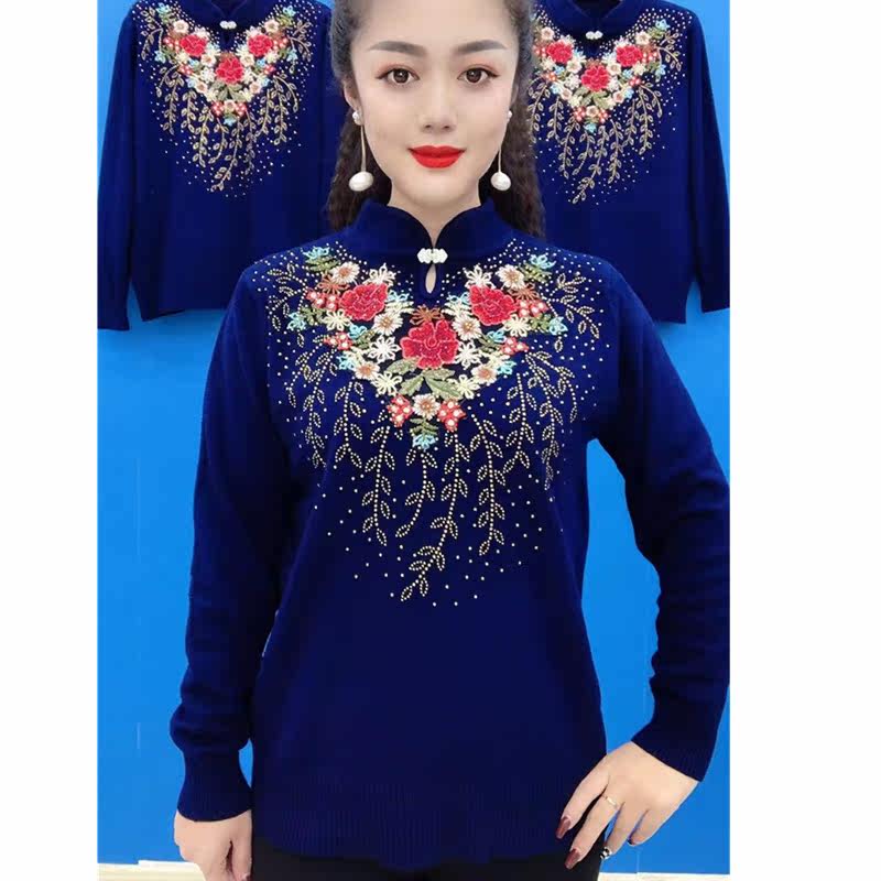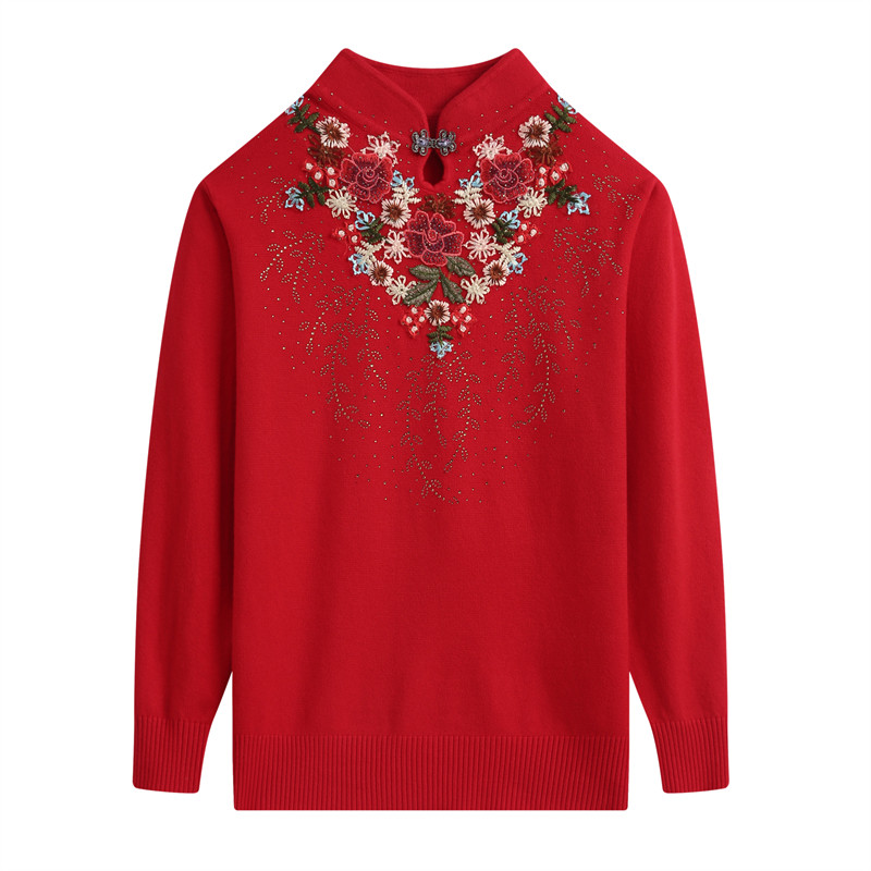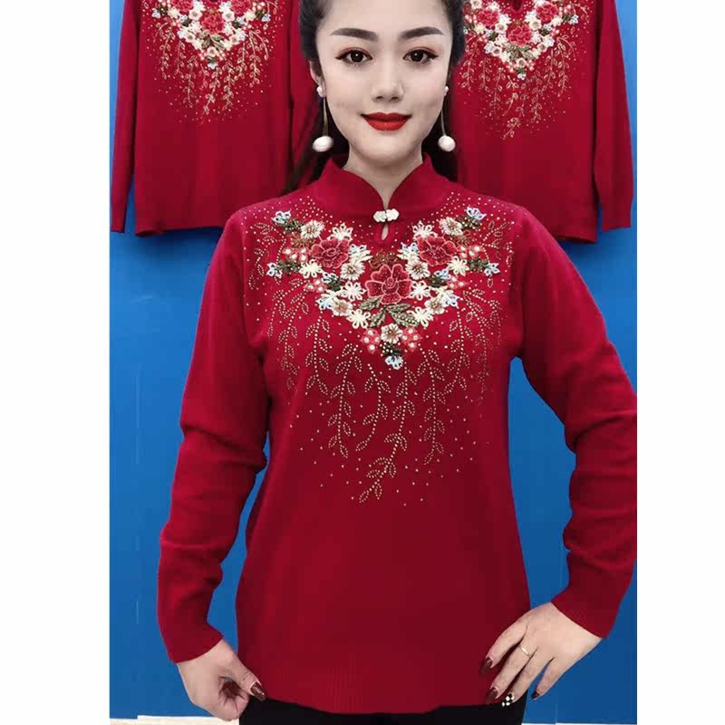 Happy mother-in-law wedding banquet Middle-aged Moms Loaded Loose Needle Weaselwear aged ladies' thin sweater qipao collar clothes