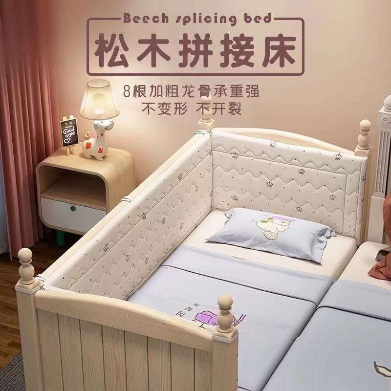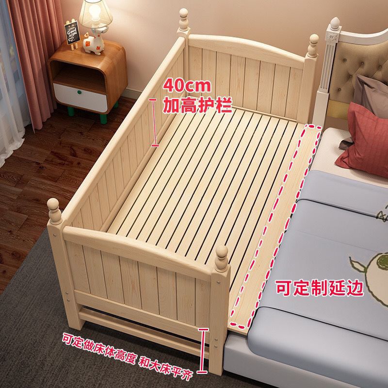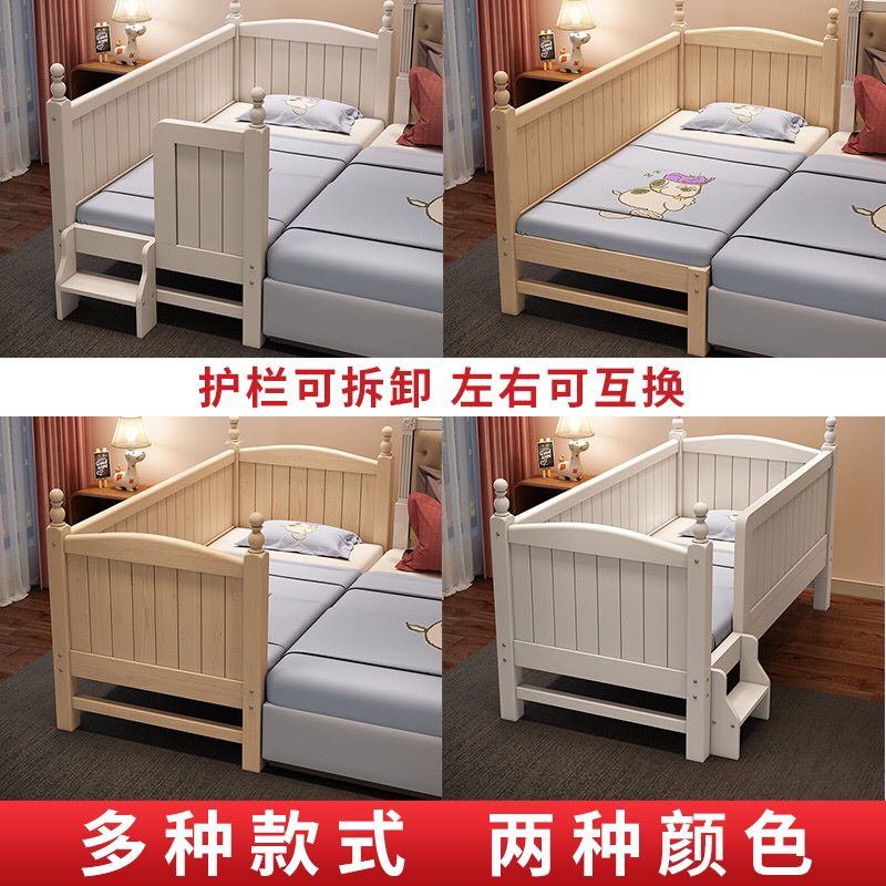 Solid wood Children's bed with guardrails small bed splicing large bed widening Divine Instrumental Boy White Single Beds Bedside Bed-Taobao